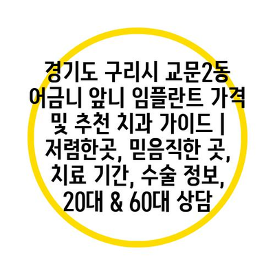 경기도 구리시 교문2동에서 임플란트를 생각하고 계신 분들을 위해 믿을 수 있는 전문 치과를 추천합니다. 임플란트는 치료 과정이 복잡할 수 있지만, 전문적인 의료진과 함께하면 안전하고 효율적으로 진행될 수 있습니다. 이번 공지에서는 임플란트 가격, 치료 날짜, 그리고 20대와 60대 분들에 대한 상담 정보까지 다루겠습니다.