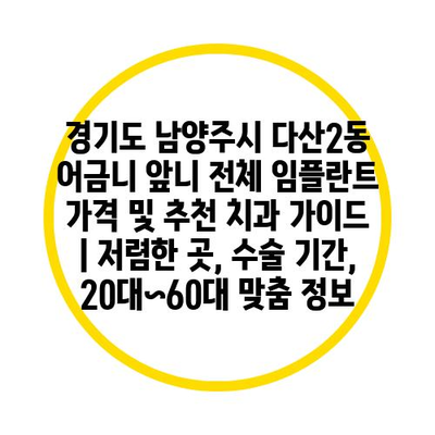 ✅ 경기도 남양주에서 저렴한 임플란트 비용과 치과 추천 정보를 알아보세요.