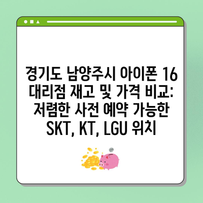 💡 경기도 남양주시 아이폰 16 대리점의 재고 및 가격 정보를 확인해보세요. 💡