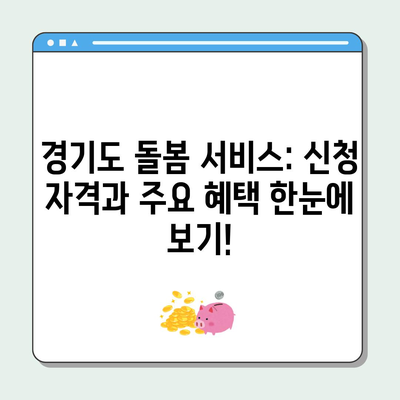 경기도 돌봄 서비스: 신청 자격과 주요 혜택 한눈에 보기!