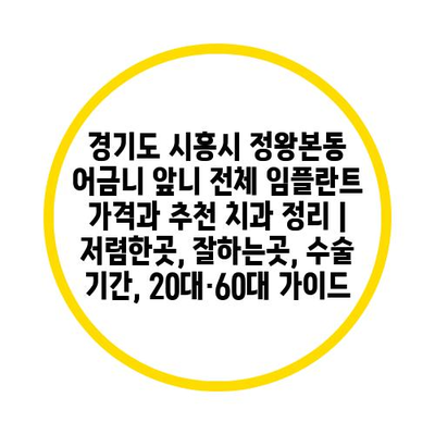 경기도 시흥시 정왕본동 어금니 앞니 전체 임플란트 가격과 추천 치과 정리 | 저렴한곳, 잘하는곳, 수술 기간, 20대·60대 가이드
