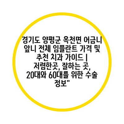 경기도 양평군 옥천면 어금니 앞니 전체 임플란트 가격 및 추천 치과 설명서 | 저렴한곳, 잘하는 곳, 20대와 60대를 위한 수술 정보