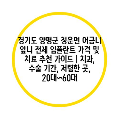 경기도 양평군 청운면 어금니 앞니 전체 임플란트 가격 및 치료 추천 가이드 | 치과, 수술 기간, 저렴한 곳, 20대~60대