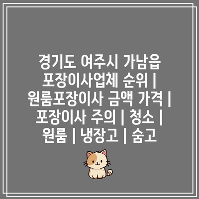 더 이상 찾지 마세요! 여기 여주시 가남읍 포장이사업체 순위를 소개합니다.