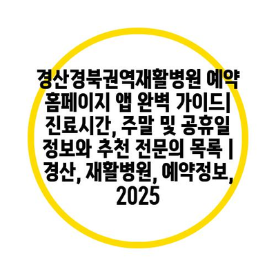 경산경북권역재활병원 예약 홈페이지 앱 완벽 가이드| 진료시간, 주말 및 공휴일 정보와 추천 전문의 목록 | 경산, 재활병원, 예약정보, 2025