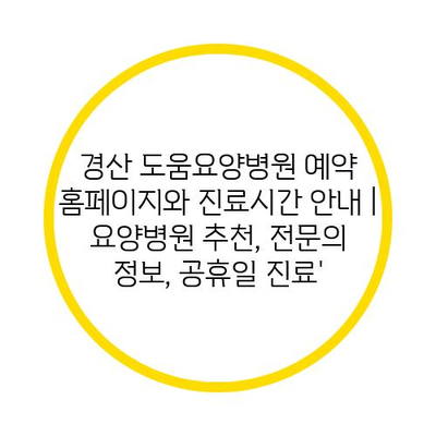 경산 도움요양병원 예약 홈페이지와 진료시간 공지 | 요양병원 추천, 전연락 정보, 공휴일 진료’ 에 대해 자주 묻는 질문 TOP 5