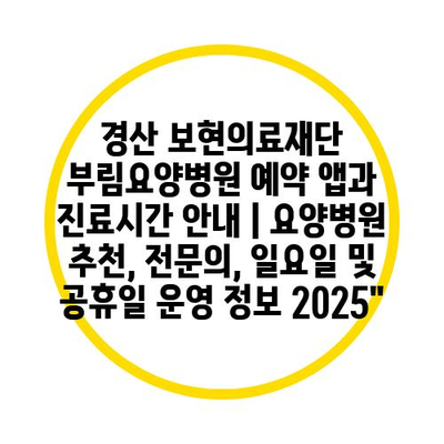 경산 보현의료재단 부림요양병원 예약 앱과 진료시간 공지 | 요양병원 추천, 전연락, 일요일 및 공휴일 운영 정보 2025″ 에 대해 자주 묻는 질문 TOP 5