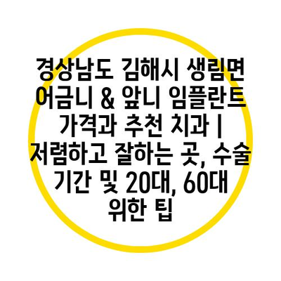 경상남도 김해시 생림면은 치과 임플란트 수술을 고려하는 분들에게 다양한 선택지를 알려알려드리겠습니다. 임플란트의 가격은 치과마다 다를 수 있으며, 여러 요인에 따라 달라지기 때문에 비교가 필요합니다.