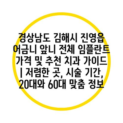 경상남도 김해시에서 임플란트 비용은 치과마다 상이하며, 평균적으로는 약 100만 원에서 300만 원 사이입니다. 따라서 가격 비교는 필수적이며, 자신에게 맞는 치과를 찾는 것이 중요합니다.