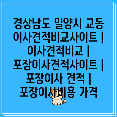 오늘 바로 경상남도 밀양시 교동 이사견적비교사이트를 방문하여 포장이사비용을 비교하고 최저 가격을 찾으세요!