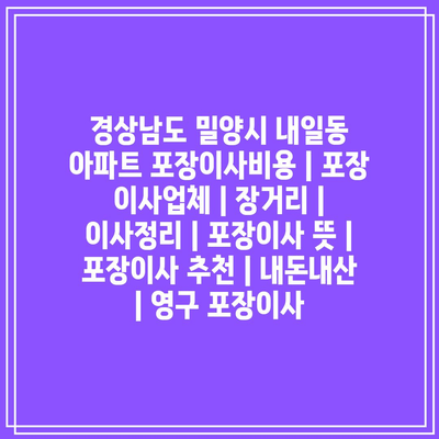 경상남도 밀양시 내일동 아파트 포장이사비용 | 포장 이사업체 | 장거리 | 이사정리 | 포장이사 뜻 | 포장이사 추천 | 내돈내산 | 영구 포장이사 에 대해 자주 묻는 질문 TOP 5