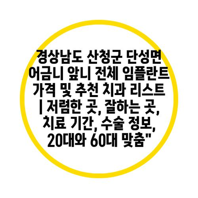 “산청군 단성면의 임플란트 비용은 지역 경제에 따라 다양한 편입니다.”