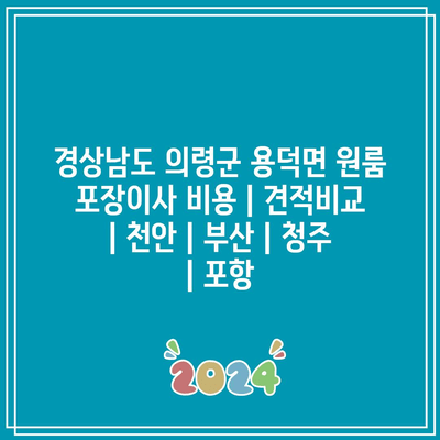 경상남도 의령군 용덕면 원룸 포장이사비용 비교를 위해 믿을 수 있는 곳을 찾고 계신가요?
