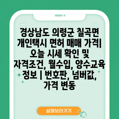 경상남도 의령군 칠곡면 개인택시 면허 매매 가격| 오늘 시세 확인 및 자격조건, 월수입, 양수교육 정보 | 번호판, 넘버값, 가격 변동 에 대해 자주 묻는 질문 TOP 5