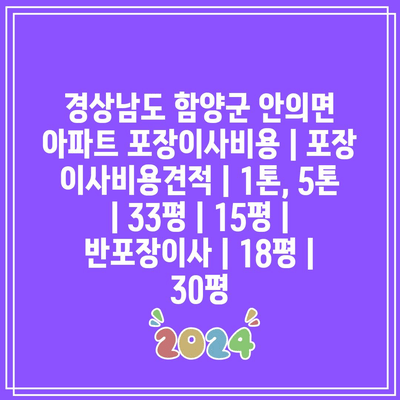 경상남도 함양군 안의면 아파트 포장이사비용 | 포장 이사비용견적 | 1톤, 5톤 | 33평 | 15평 | 반포장이사 | 18평 | 30평 에 대해 자주 묻는 질문 TOP 5