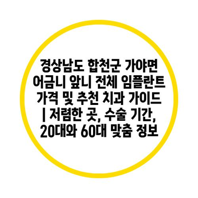 경상남도 합천군 가야면 어금니 앞니 전체 임플란트 가격 및 추천 치과 가이드 | 저렴한 곳, 수술 기간, 20대와 60대 맞춤 정보