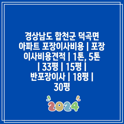 경상남도 합천군 덕곡면 아파트 포장이사비용 | 포장 이사비용견적 | 1톤, 5톤 | 33평 | 15평 | 반포장이사 | 18평 | 30평 에 대해 자주 묻는 질문 TOP 5