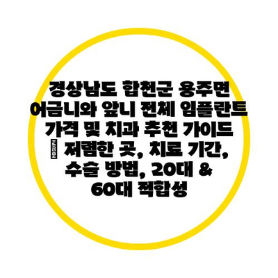 경상남도 합천군 용주면 어금니와 앞니 전체 임플란트 가격 및 치과 추천 가이드 | 저렴한 곳, 치료 기간, 수술 방법, 20대 & 60대 적합성