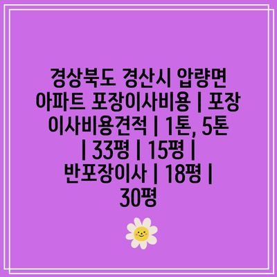 경상북도 경산시 압량면 아파트 포장이사비용 | 포장 이사비용견적 | 1톤, 5톤 | 33평 | 15평 | 반포장이사 | 18평 | 30평