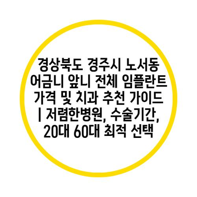 ✅ 경주 노서동 임플란트 가격과 최적의 병원을 찾아보세요.