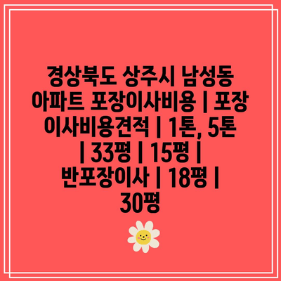 경상북도 상주시 남성동 아파트 포장이사비용 | 포장 이사비용견적 | 1톤, 5톤 | 33평 | 15평 | 반포장이사 | 18평 | 30평 에 대해 자주 묻는 질문 TOP 5