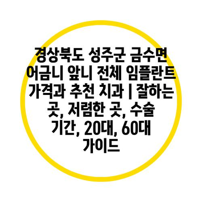 ✅ 경상북도 성주군에서의 임플란트 치료 비용과 추천 치과를 알아보세요!