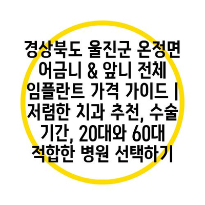 경상북도 울진군 온정면 어금니 & 앞니 전체 임플란트 가격 가이드 | 저렴한 치과 추천, 수술 기간, 20대와 60대 적합한 병원 선택하기