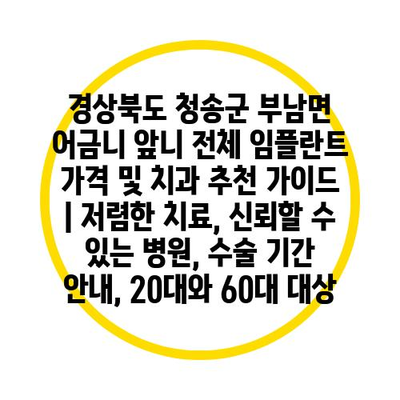 경상북도 청송군 부남면 어금니 앞니 전체 임플란트 가격 및 치과 추천 가이드 | 저렴한 치료, 신뢰할 수 있는 병원, 수술 기간 안내, 20대와 60대 대상