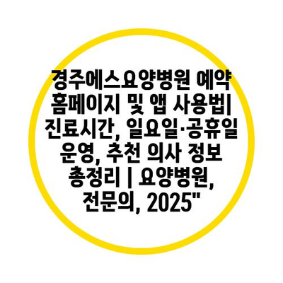 경주에스요양병원 예약 홈페이지 및 앱 사용법| 진료시간, 일요일·공휴일 운영, 추천 의사 정보 총정리 | 요양병원, 전연락, 2025″ 에 대해 자주 묻는 질문 TOP 5