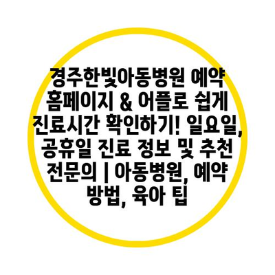 경주한빛아동병원 예약 홈페이지 & 어플로 쉽게 진료시간 확인하기! 일요일, 공휴일 진료 정보 및 추천 전연락 | 아동병원, 예약 방법, 육아 팁 에 대해 자주 묻는 질문 TOP 5