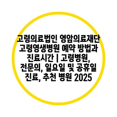 고령의료법인 영암의료재단 고령영생병원 예약 방법과 진료시간 | 고령병원, 전연락, 일요일 및 공휴일 진료, 추천 병원 2025 에 대해 자주 묻는 질문 TOP 5