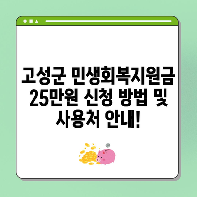 💡 고성군 민생회복지원금의 신청 및 사용 방법을 지금 바로 알아보세요! 💡