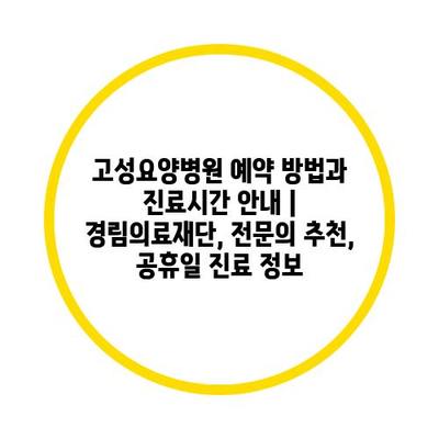 ✅ 고성요양병원의 예약 방법과 진료시간을 지금 바로 알아보세요.