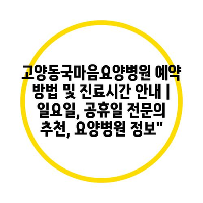 고양동국마음요양병원 예약 방법 및 진료시간 공지 | 일요일, 공휴일 전연락 추천, 요양병원 정보