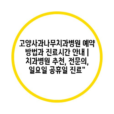 고양사과나무치과병원의 예약 방법과 진료시간을 지금 바로 알아보세요!