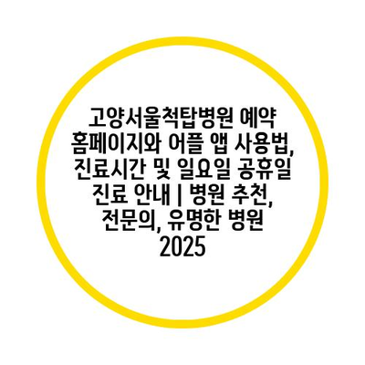 고양서울척탑병원 예약 홈페이지와 어플 앱 사용법, 진료시간 및 일요일 공휴일 진료 공지 | 병원 추천, 전연락, 유명한 병원 2025에 대해 소개합니다.