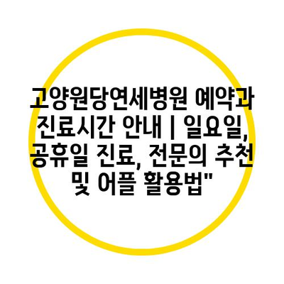 고양원당연세병원 예약과 진료시간 안내 | 일요일, 공휴일 진료, 전문의 추천 및 어플 활용법”
