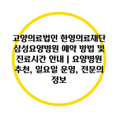 고양의료법인 한영의료재단 삼성요양병원 예약 방법 및 진료시간 공지 | 요양병원 추천, 일요일 운영, 전연락 정보 에 대해 자주 묻는 질문 TOP 5