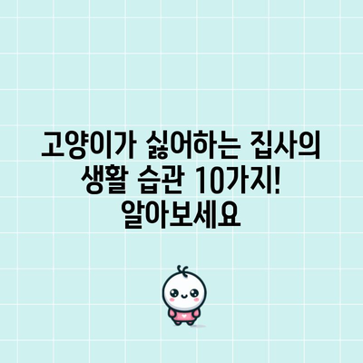 고양이를 기르는 집사라면 반드시 알아야 할 것이 있습니다. 바로 고양이가 싫어하는 집사의 생활 습관 10가지입니다. 고양이는 사람과는 다른 생리적 및 심리적 특성을 가지고 있기 때문에 집사로서의 일상에서도 이를 고려해야 합니다. 이번 포스트에서는 고양이가 싫어하는 10가지 생활 습관을 통해 고양이와 집사가 함께 행복한 환경을 조성할 수 있는 방법을 제안하고자 합니다.