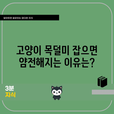 고양이 목덜미를 잡으면 얌전해지는 이유는 무엇일까요? 많은 사람들이 고양이를 목덜미로 들어 올리는 모습을 쉽게 볼 수 있습니다. 특히 어미 고양이가 아기 고양이를 안전하게 옮기는 모습을 보면, 목덜미를 잡히면 고양이가 순해진다는 사실이 보편적이라는 것을 알 수 있습니다. 하지만 이런 행동이 고양이에게 실제로 어떠한 영향을 미치는지는 잘 알려지지 않았습니다. 이번 포스팅에서는 그 이유에 대해 깊이 있게 알아보고, 고양이와의 올바른 상호작용 방법에 대해서도 소개해 드리겠습니다.