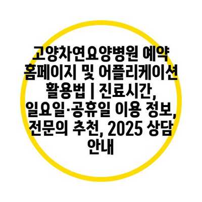 ✅ 고양차연요양병원 예약 방법과 진료시간을 알아보세요!