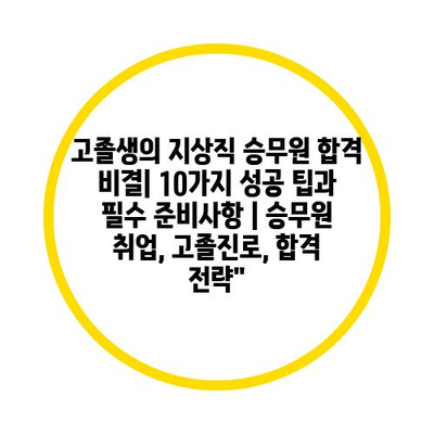 고졸생의 지상직 승무원 합격 비결| 10가지 성공 팁과 필수 준비사항 | 승무원 취업, 고졸진로, 합격 전략 에 대해 자주 묻는 질문 TOP 5