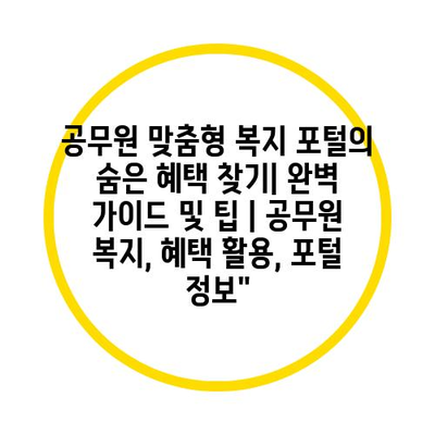 공무원 맞춤형 복지 포털의 숨은 혜택 찾기| 완벽 설명서 및 팁 | 공무원 복지, 혜택 활용, 포털 정보