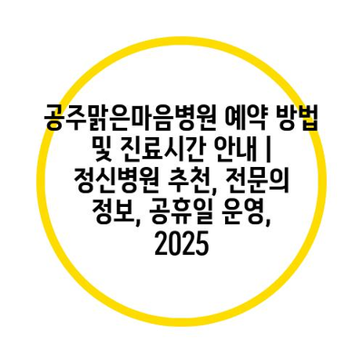 공주맑은마음병원 예약 방법 및 진료시간 공지 | 정신병원 추천, 전연락 정보, 공휴일 운영, 2025 에 대해 자주 묻는 질문 TOP 5