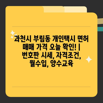 과천시 부림동 개인택시 면허 매매 가격 오늘 확인! | 번호판 시세, 자격조건, 월수입, 양수교육 에 대해 자주 묻는 질문 TOP 5