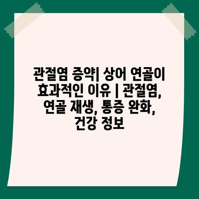 관절염 증약 | 상어 연골이 효과적인 이유 | 관절염, 연골 재생, 통증 완화, 건강 정보