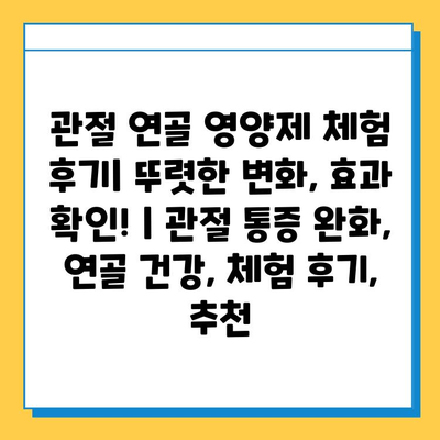 관절 연골 영양제 체험 후기| 뚜렷한 변화, 효과 확인! | 관절 통증 완화, 연골 건강, 체험 후기, 추천