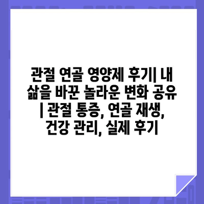 관절 연골 영양제 후기 | 내 삶을 바꾼 놀라운 변화 공유 | 관절 통증, 연골 재생, 건강 관리, 실제 후기