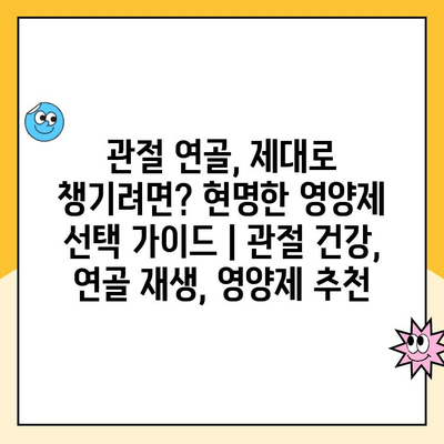 현명한 영양제 선택 설명서 | 관절 건강, 연골 재생, 영양제 추천