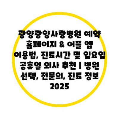 광양광양사랑병원 예약 홈페이지 & 어플 앱 이용법, 진료시간 및 일요일 공휴일 의사 추천 | 병원 선택, 전연락, 진료 정보 2025에 대해 소개합니다.